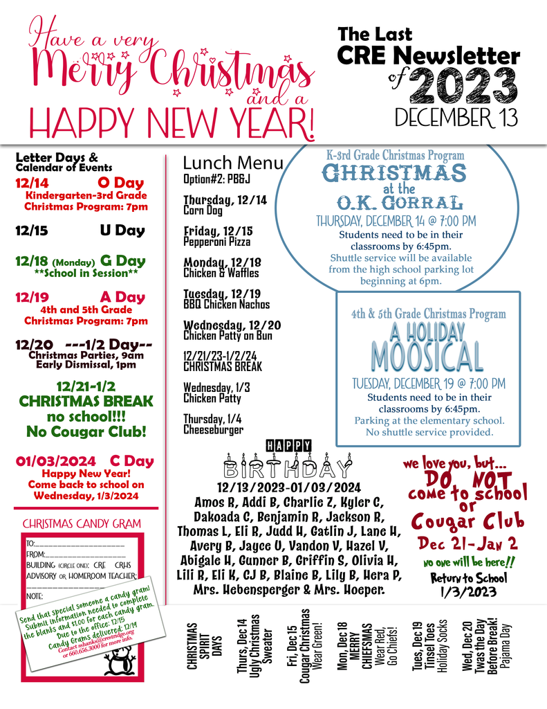 CRE Newsletter and Homecoming Shirt Order Form